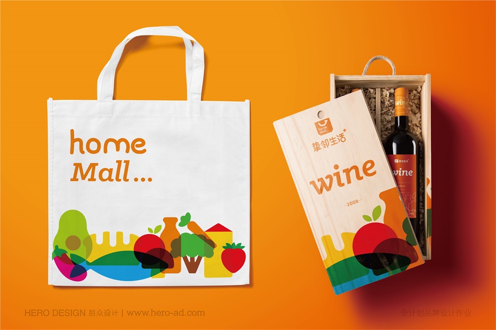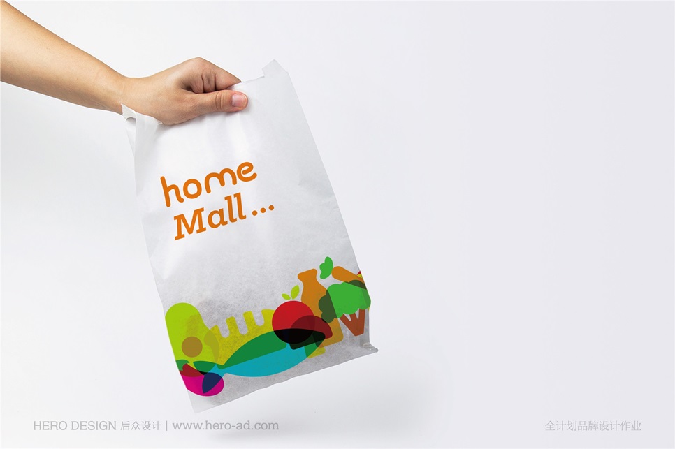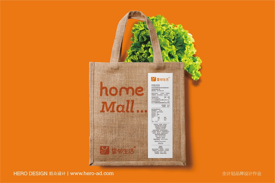 摯鄰生活英文名稱HomeMall,使用不同的字體體現(xiàn),在方正規(guī)則的圖形中產(chǎn)生變化,增加了標(biāo)志整體的趣味性與親切感。Mall后面的三個省略號代表線上、賣場和便民服務(wù)站的遞進(jìn)互動關(guān)系,也寓意摯鄰在挖掘消費需求,不斷延伸服務(wù)的追求中永無止境。