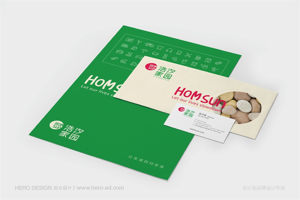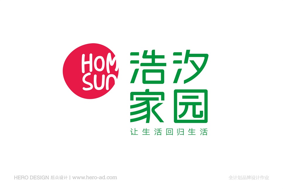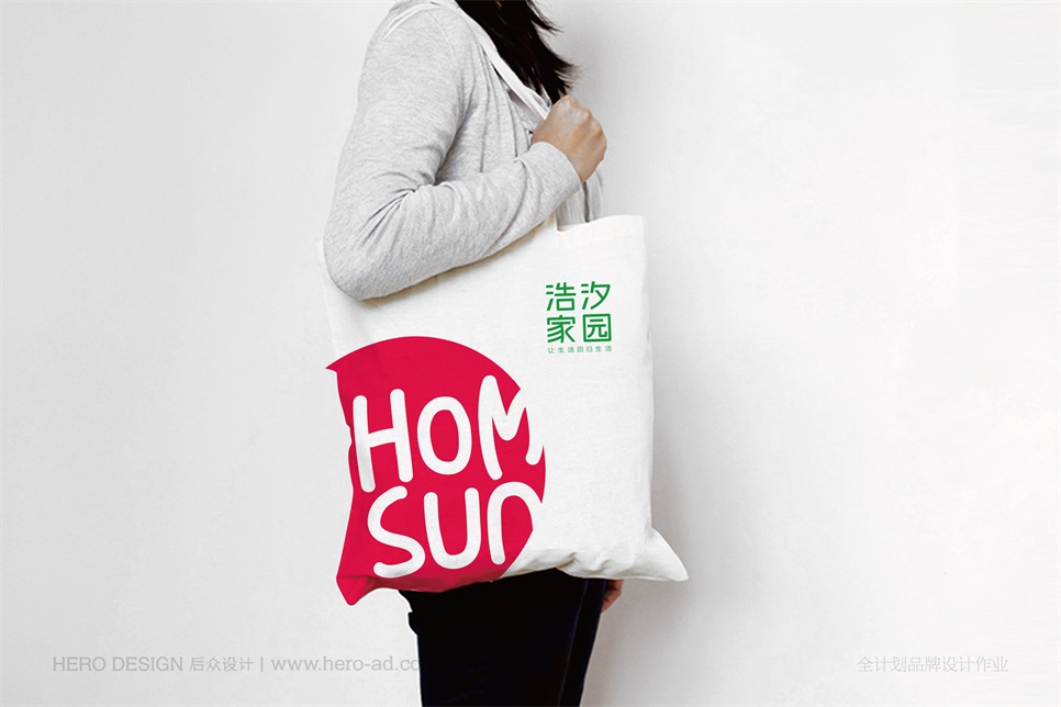 在策略的引導(dǎo)下,用設(shè)計(jì)來體現(xiàn)品牌內(nèi)涵,是接下來的工作。浩汐標(biāo)識(shí)以浩汐家園中文為主,配合隨形圖形,植入品牌的英文名稱“homsun”,配合品牌Slogan共同組合。