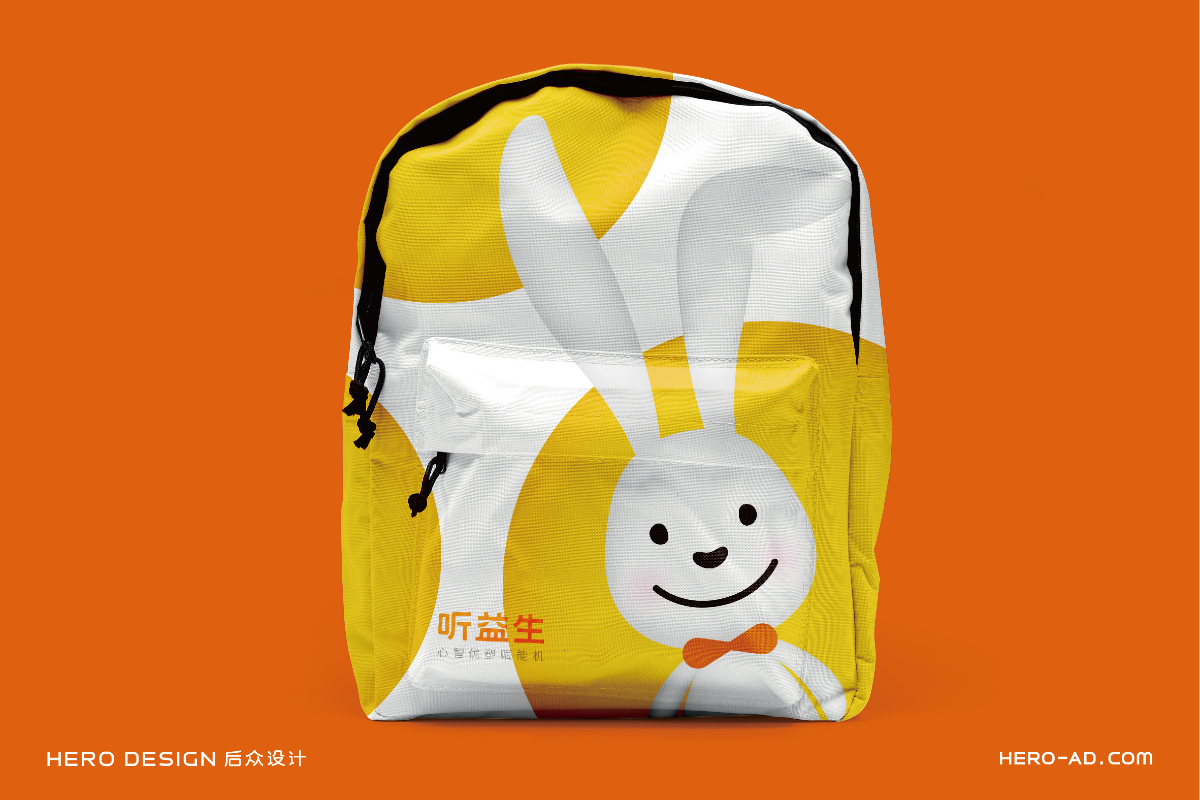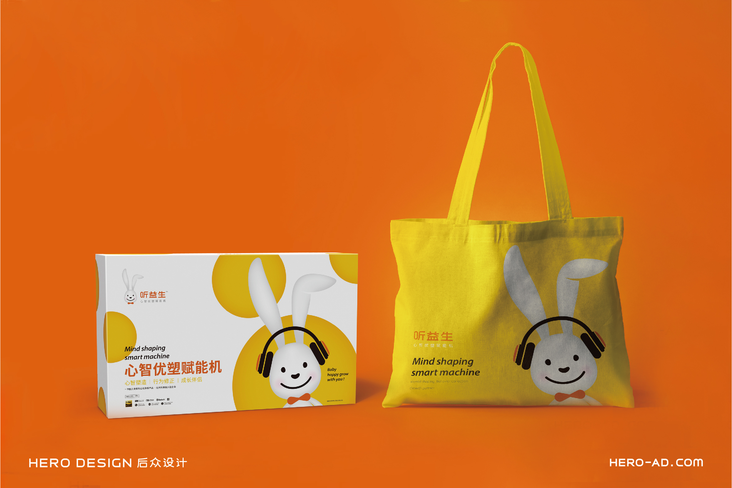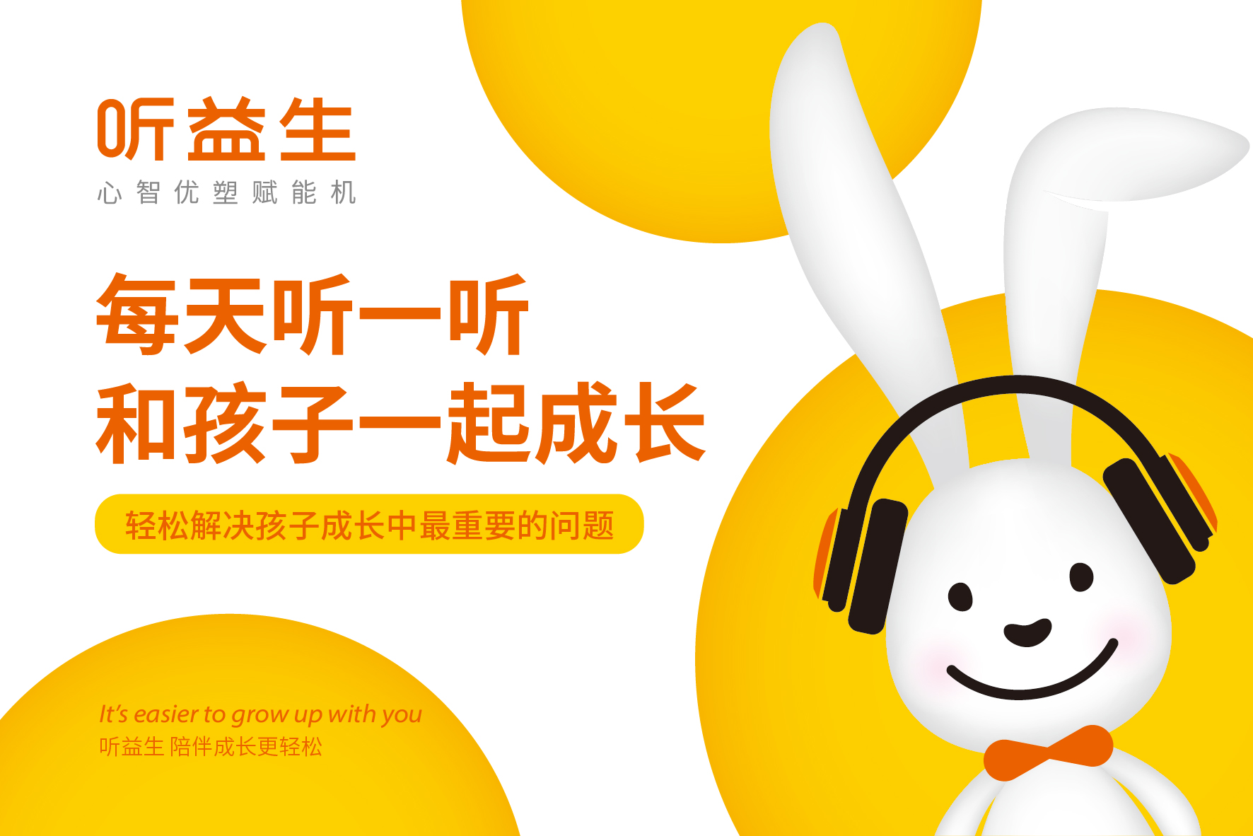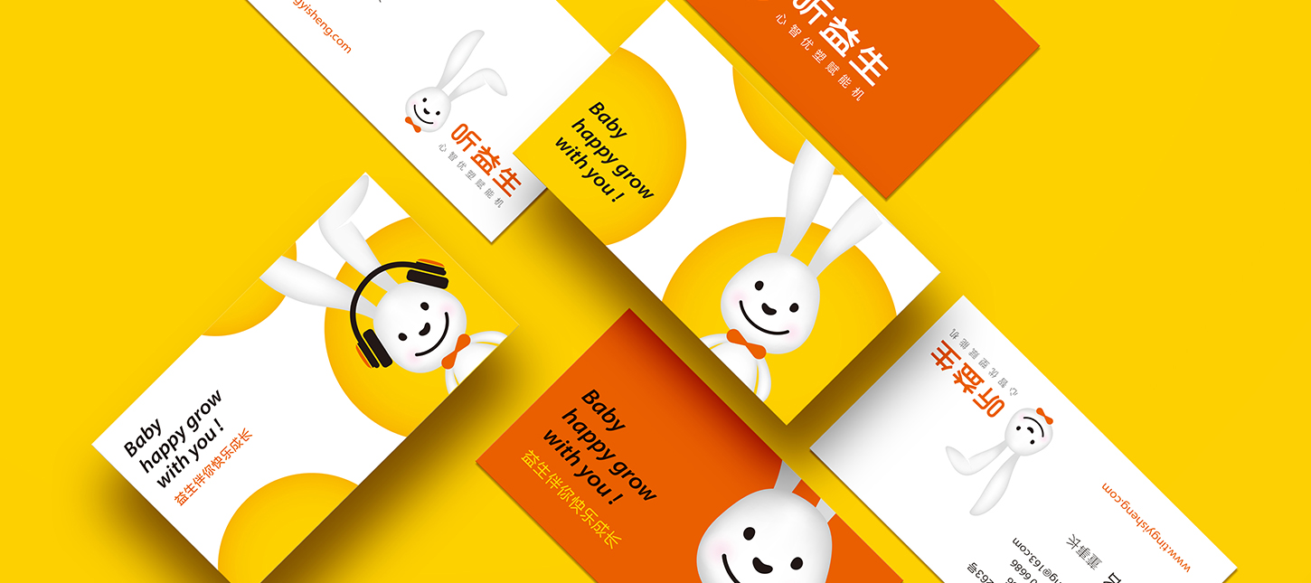 在童話里,兔子是乖巧伶俐、天真執(zhí)著、聰慧豁達(dá)、勇敢守信的形象代表,結(jié)合兔子本身雪白柔順的皮毛、長長的耳朵以及善于奔跑跳躍的特點(diǎn),一直是孩子們最喜愛的動物形象之一。針對孩子喜愛可愛、萌系的卡通形象的群體特性,在聽益生的視覺表現(xiàn)層面,我們?yōu)槁犚嫔鷦?chuàng)造一個戴著聽益生心智優(yōu)塑賦能機(jī)的小白兔形象,以兔喻人,對真實(shí)的使用場景進(jìn)行展示,通過對品牌用戶喜好的精準(zhǔn)把握,拉近品牌與使用者的情感距離。