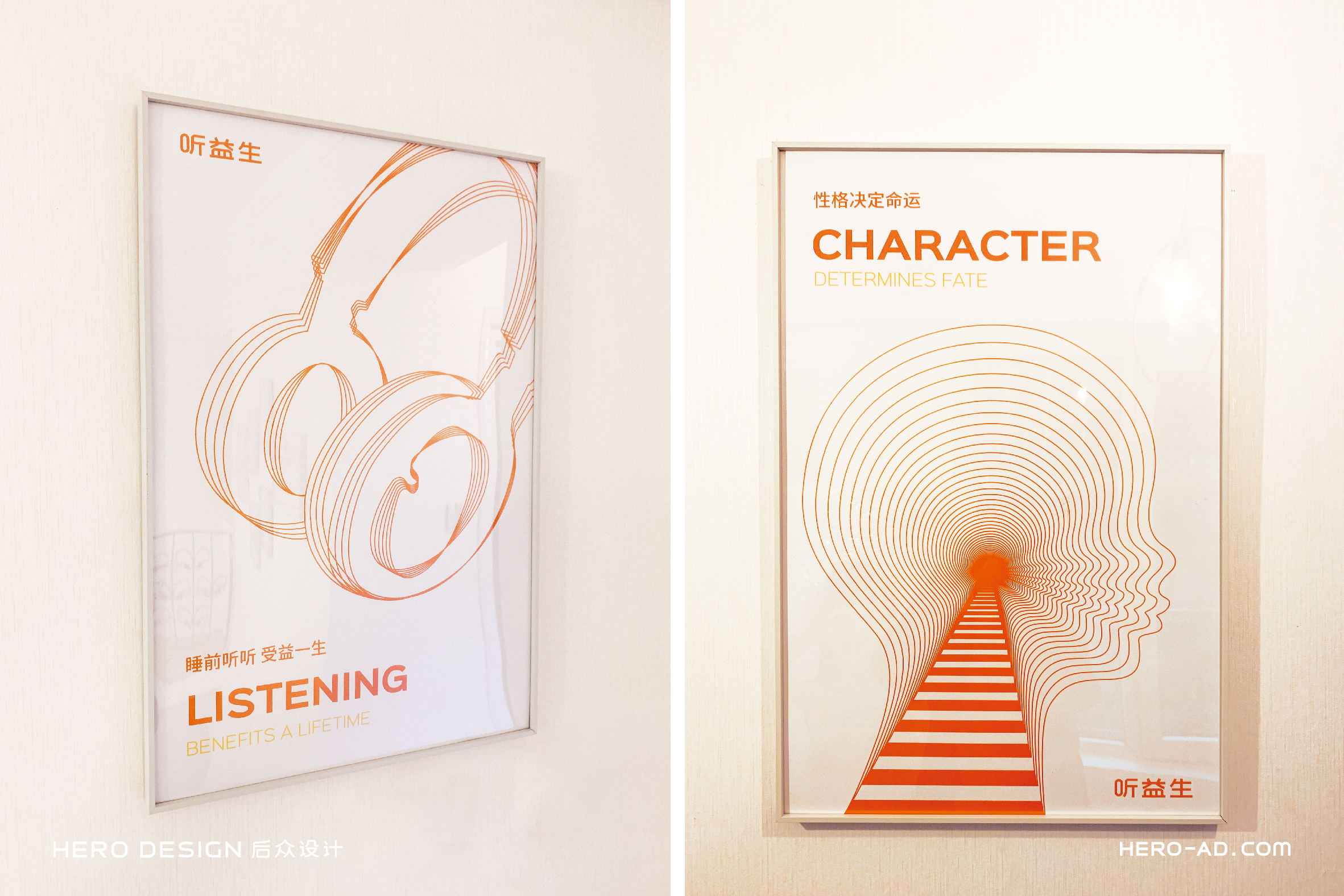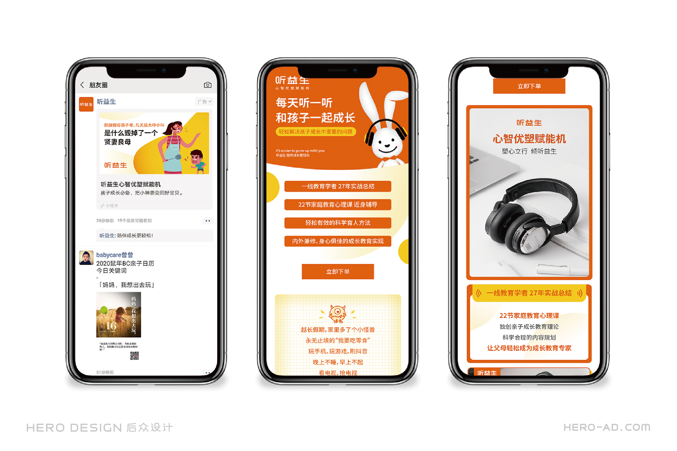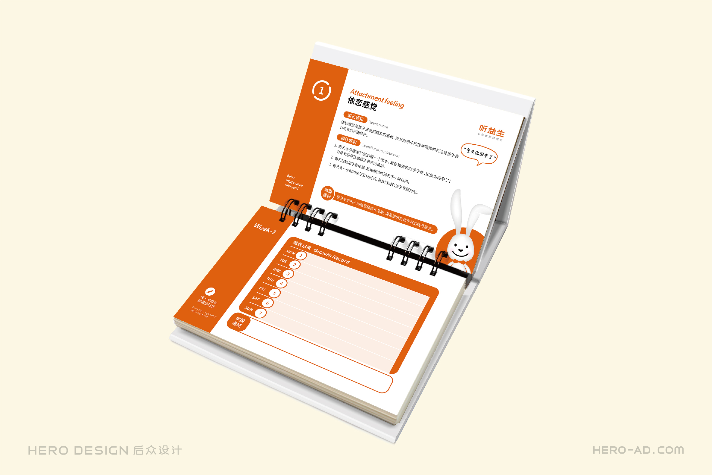在童話里,兔子是乖巧伶俐、天真執(zhí)著、聰慧豁達(dá)、勇敢守信的形象代表,結(jié)合兔子本身雪白柔順的皮毛、長長的耳朵以及善于奔跑跳躍的特點(diǎn),一直是孩子們最喜愛的動物形象之一。針對孩子喜愛可愛、萌系的卡通形象的群體特性,在聽益生的視覺表現(xiàn)層面,我們?yōu)槁犚嫔鷦?chuàng)造一個戴著聽益生心智優(yōu)塑賦能機(jī)的小白兔形象,以兔喻人,對真實(shí)的使用場景進(jìn)行展示,通過對品牌用戶喜好的精準(zhǔn)把握,拉近品牌與使用者的情感距離。