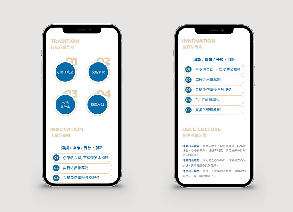 由于德庶商會拋棄了地域和行業(yè)的限制,缺乏一種天然的趨同感,我們希望通過一種簡單又具有符號性的方式來彰顯商會成員對于組織的認(rèn)同感和文化的信仰。于是,便設(shè)計了德庶徽章。