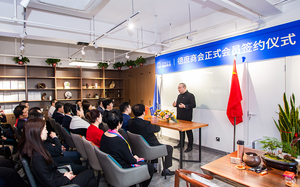 這是一張德庶商會會員活動結(jié)束后的合影,人們的臉上洋溢著飽滿而快樂的微笑。而胸前統(tǒng)一佩戴的德庶徽章,與熱情的氛圍交相輝映,展現(xiàn)出德庶商會的強大凝聚力和生命力。