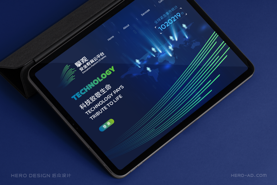 漸變弧線象征著地球,寓意“科技之光”照亮大地,為安全教育提供先進而堅定的支持。
