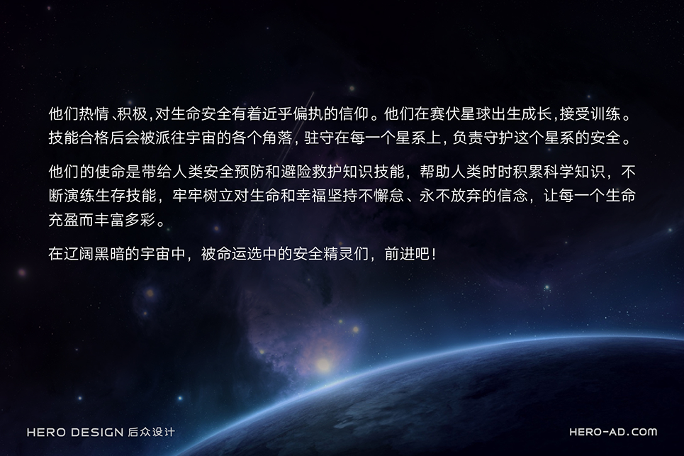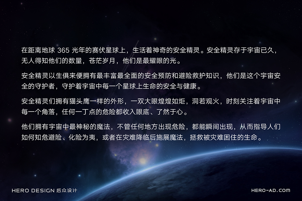 基于青少年群體對神秘世界的好奇,我們創(chuàng)作了賽伏星球的故事背景,讓貓頭鷹成為這個星球的安全精靈,而它們的使命,就是保護這個宇宙中每個星球上的生命的安全與健康。
