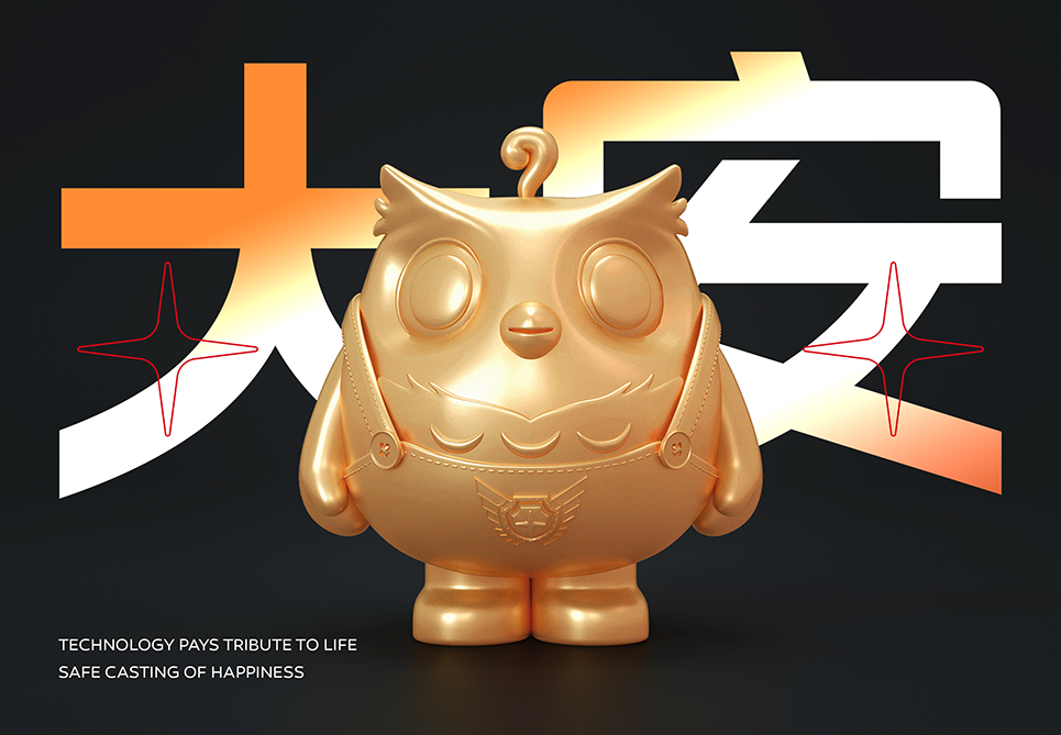 在IP大安形象的設(shè)計上,我們提取了貓頭鷹具有標(biāo)志性的大眼和眼部的耳羽簇,然后將身體在正常比例下進行夸張的潤度處理,以增加可愛治愈的特性和親和力。大眼是貓頭鷹的標(biāo)志性符號,在保留此特征的基礎(chǔ)上進行審美優(yōu)化,使雙眼顯得炯然充滿神彩,透露著對未知世界不斷探索的渴望。