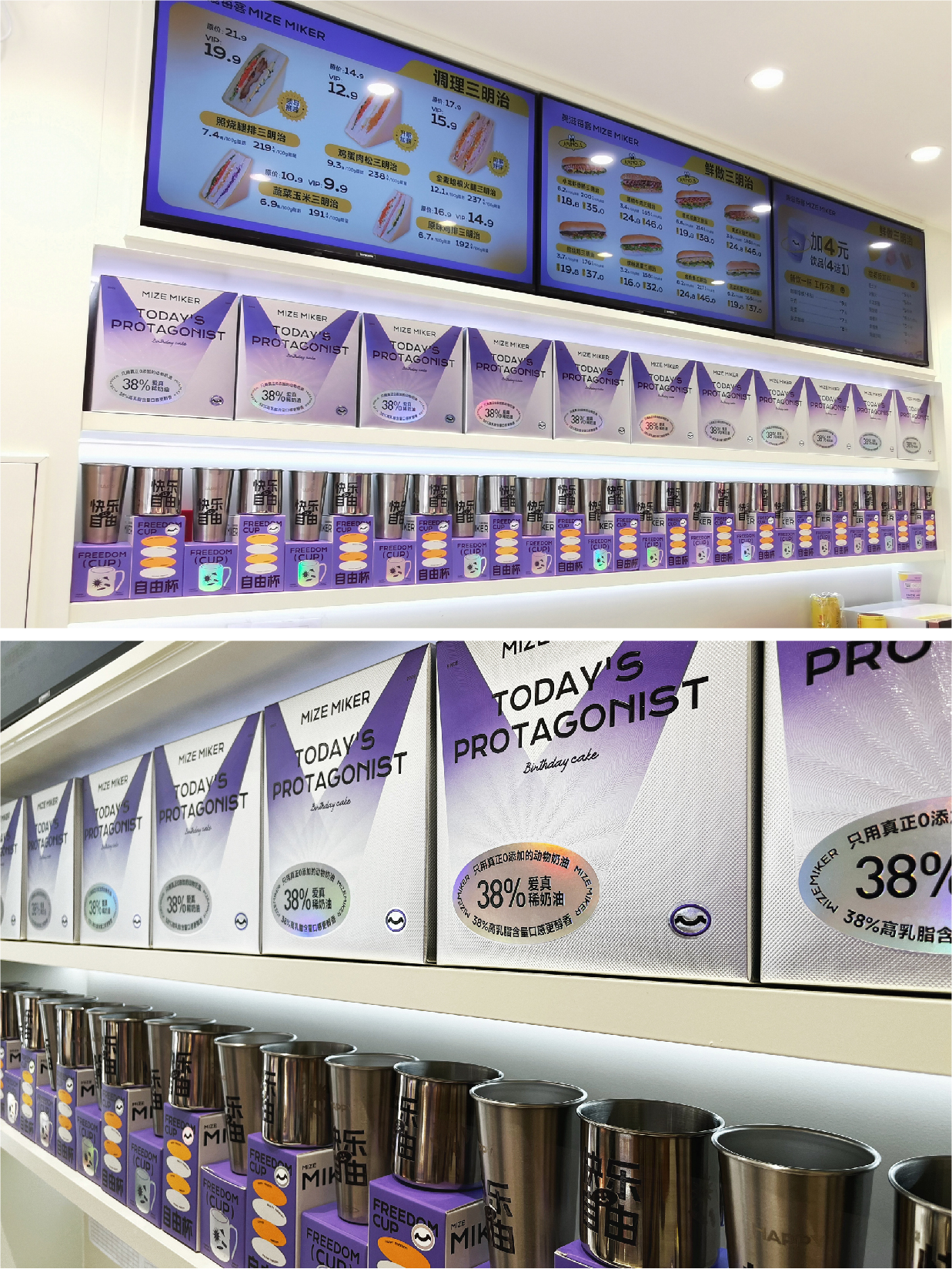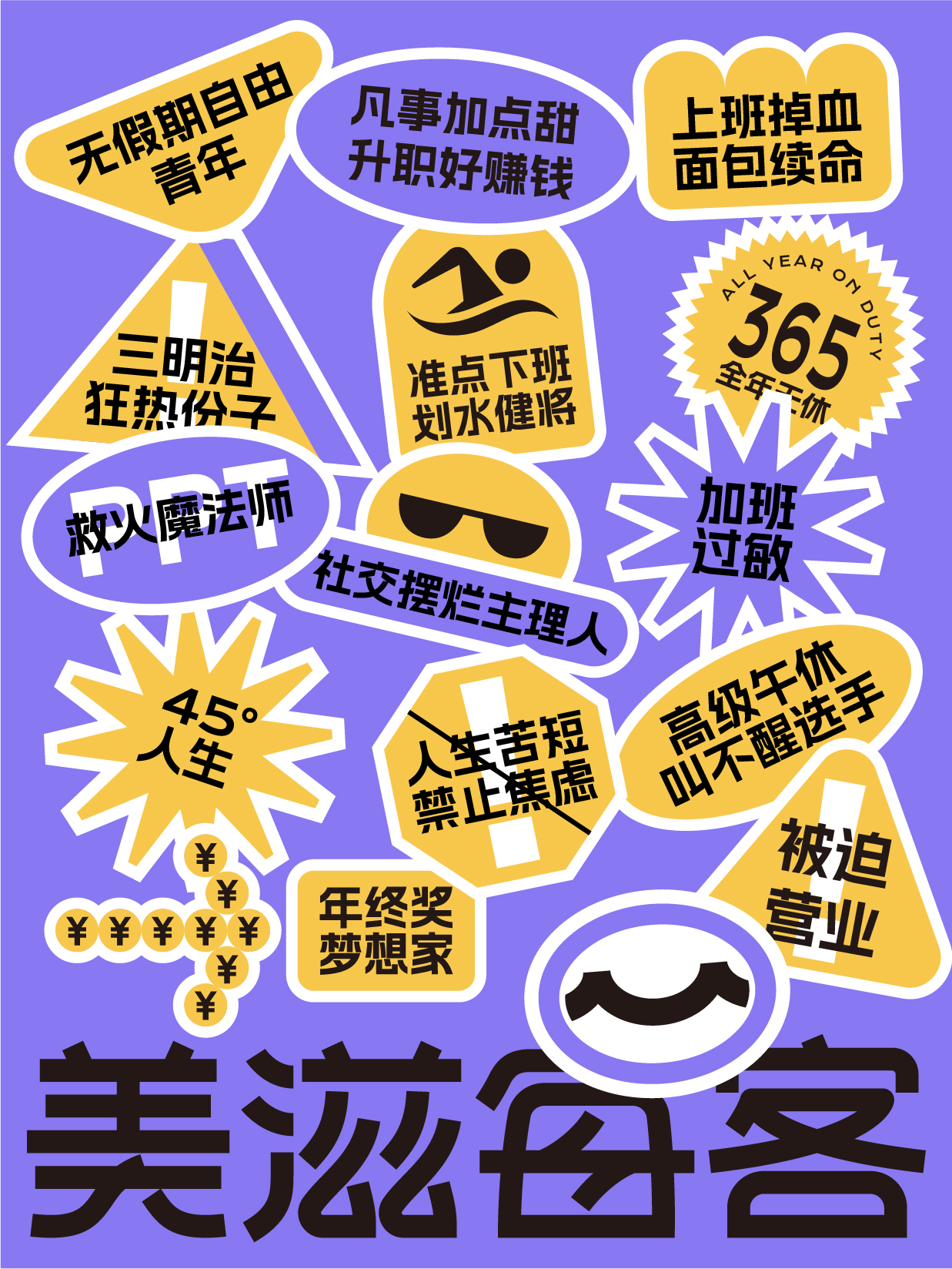 受客戶委托,后眾為其進(jìn)行整體品牌策略形象升級,以“Office”的主題概念打開年輕人的消費(fèi)市場,品牌標(biāo)志以“M”字母入手,將其創(chuàng)作成為一個代表“微笑”的獨(dú)特符號,在門店消費(fèi)環(huán)境中,融入了“打工”、“內(nèi)卷”等當(dāng)下年輕人較為熱議的話題,利用詼諧自嘲的表現(xiàn)形式,有溫度有新意的去消解人們?nèi)粘9ぷ骼锏姆ξ逗途衿v。幫助品牌形成話題傳播,從而快速提升美滋每客品牌市場認(rèn)知、擴(kuò)大品牌影響力。