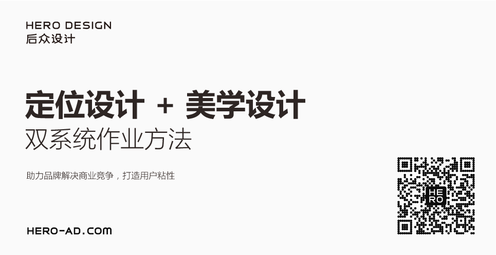 后眾秉持“品牌策略定位”與“品牌美學(xué)設(shè)計(jì)”并重的作業(yè)理念,創(chuàng)新性的開發(fā)出“定位設(shè)計(jì)”+“美學(xué)設(shè)計(jì)”雙系統(tǒng)的作業(yè)方法論,時(shí)刻平衡“品牌策略定位”與“品牌美學(xué)設(shè)計(jì)”的辯證關(guān)系,力圖將兩者做到有機(jī)融合,以組合拳的力量出擊,助力品牌解決商業(yè)競爭與用戶粘性的問題,打造同時(shí)具備商業(yè)價(jià)值與人文價(jià)值的品牌。