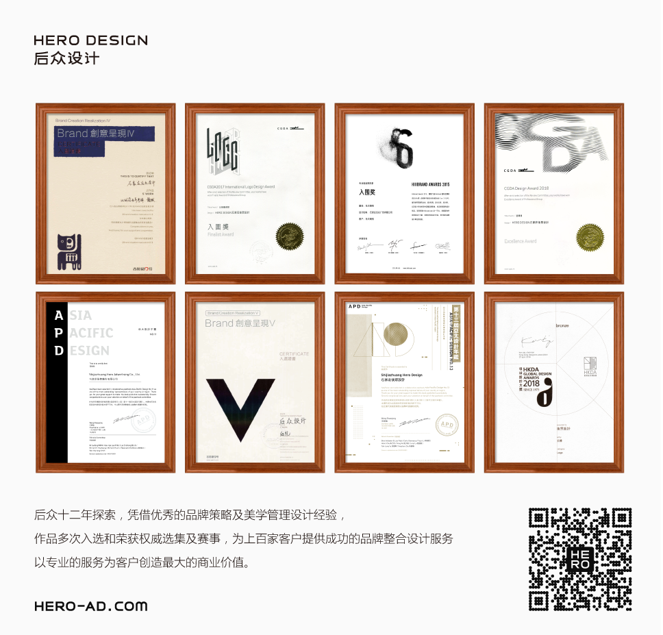 十二年探索,憑借優(yōu)秀的品牌策略及美學(xué)管理設(shè)計(jì)經(jīng)驗(yàn),作品多次入選《APD亞太設(shè)計(jì)年鑒》、《創(chuàng)意呈現(xiàn)》、Hiiibrand國際品牌標(biāo)志設(shè)計(jì)大賽、CGDA(中國平面設(shè)計(jì)協(xié)會(huì))國際標(biāo)志設(shè)計(jì)獎(jiǎng)、香港設(shè)計(jì)師協(xié)會(huì)環(huán)球設(shè)計(jì)大賽等權(quán)威選集及賽事,為上百家客戶提供成功的品牌整合設(shè)計(jì)服務(wù),涵蓋從B2B到B2C的不同領(lǐng)域,以專業(yè)的服務(wù)為客戶創(chuàng)造最大的商業(yè)價(jià)值。