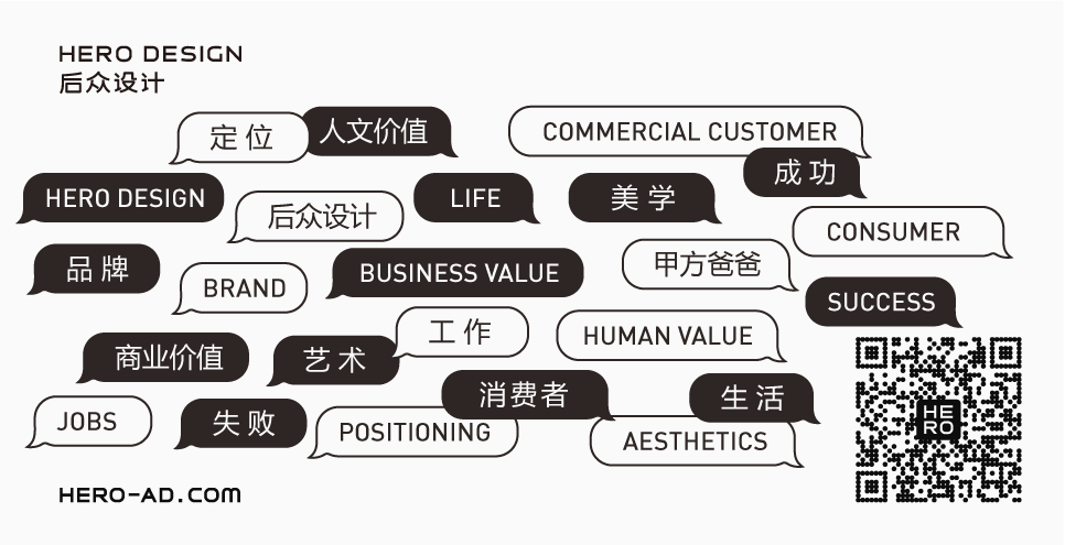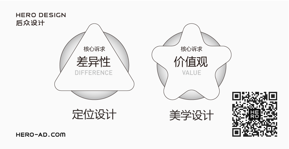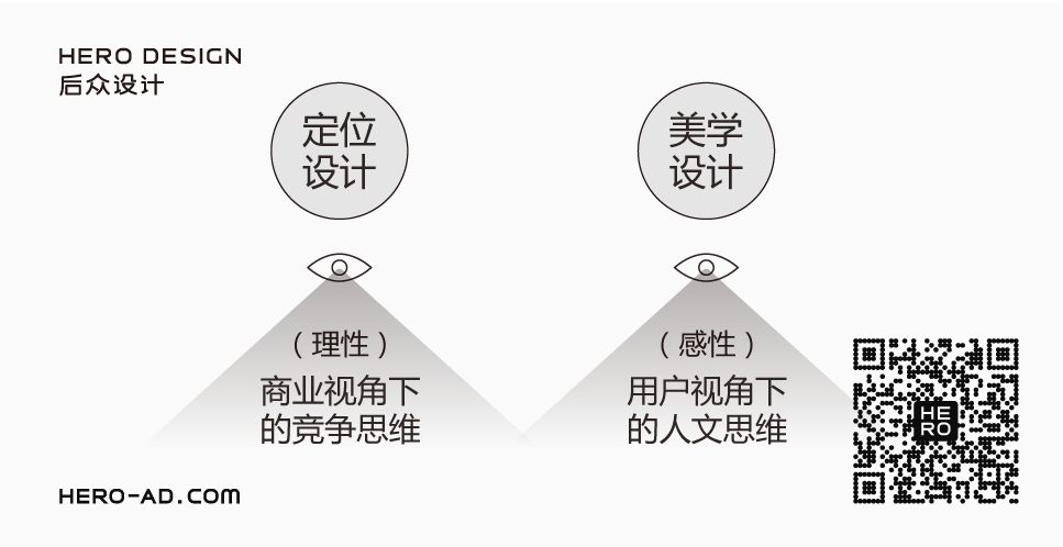 后眾倡導(dǎo)“定位設(shè)計(jì)”與“美學(xué)設(shè)計(jì)”并重的設(shè)計(jì)理念,認(rèn)為長(zhǎng)久且優(yōu)秀的品牌一定同時(shí)具有商業(yè)與人文價(jià)值,后眾將品牌打造拆分為二,一部分為注重定位與認(rèn)知、商業(yè)效果與市場(chǎng)效應(yīng)的理性設(shè)計(jì)即定位設(shè)計(jì),以策略性思維指導(dǎo)視覺(jué)內(nèi)容設(shè)計(jì),另一部分為注重文化傳達(dá)、傳播效應(yīng)與品牌粘性打造的感性設(shè)計(jì)即美學(xué)設(shè)計(jì),以美學(xué)經(jīng)驗(yàn)指導(dǎo)視覺(jué)內(nèi)容表現(xiàn)。